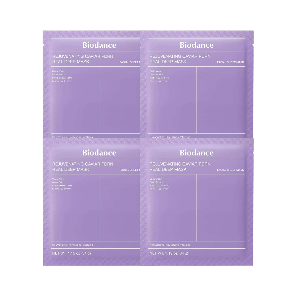 Il set Biodance Rejuvenating Caviar PDRN Real Deep Mask contiene 4 maschere viso in hydrogel progettate per offrire un trattamento intensivo rigenerante, ideale per migliorare elasticità, idratazione e luminosità della pelle.