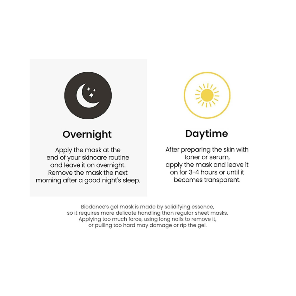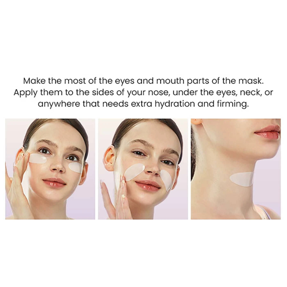 Modo d’uso: Applicare la maschera su pelle detersa, facendola aderire perfettamente al viso. Lasciare in posa per 3–4 ore oppure per tutta la notte per un effetto intensivo. Rimuovere la maschera quando diventa completamente trasparente.
