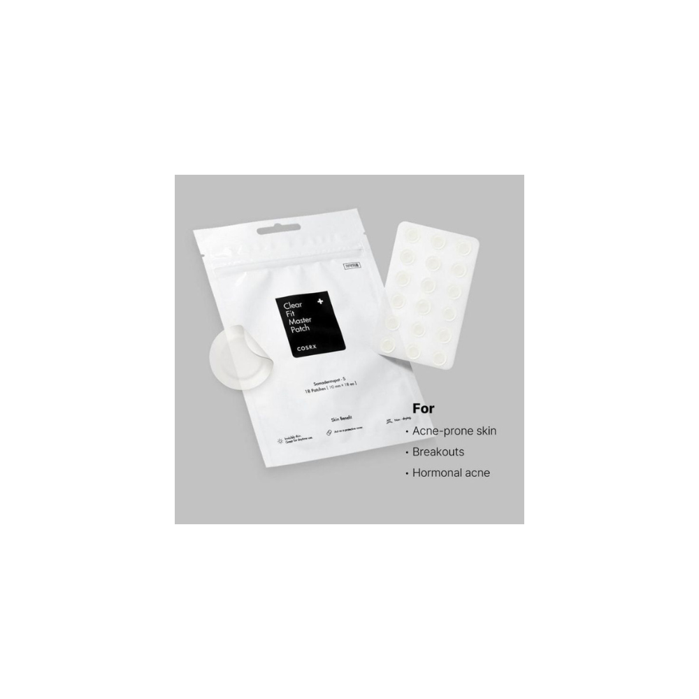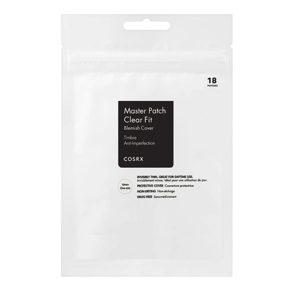 COSRX - Master Patch Clear Fit sono patch invisibili per trattare localmente brufoli e imperfezioni. Sottili e discreti, aderiscono perfettamente alla pelle creando una barriera protettiva che impedisce la contaminazione esterna e favorisce la guarigione. Questi cerottini assorbono l’essudato, calmano l’infiammazione e aiutano a ridurre il rossore e il gonfiore. Possono essere applicati anche sotto il makeup, rendendoli ideali per l’uso quotidiano. Ogni confezione contiene 18 patch da 10 mm di diametro.