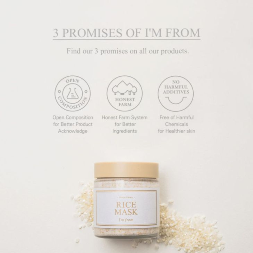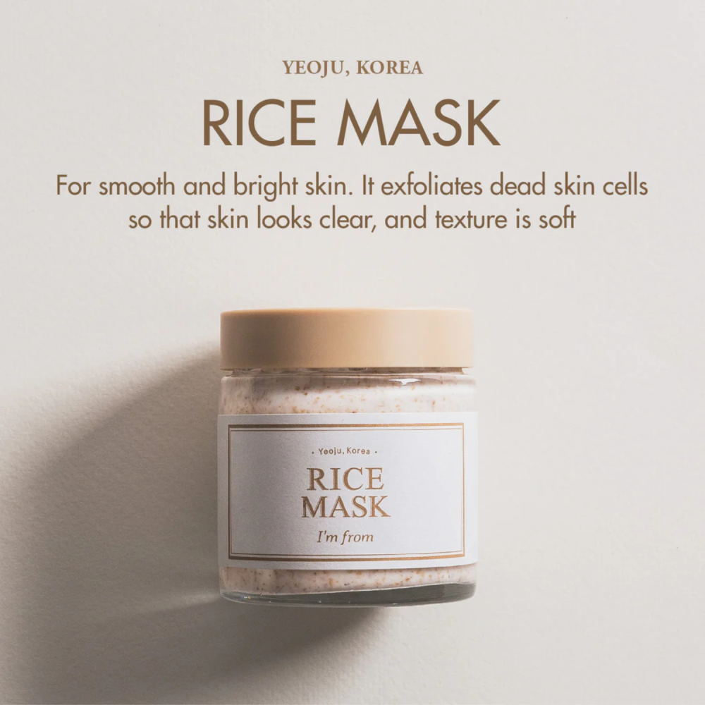 I’m From – Rice Mask è una maschera viso esfoliante delicata pensata per migliorare la texture cutanea, ravvivare l’incarnato e nutrire la pelle senza irritare.