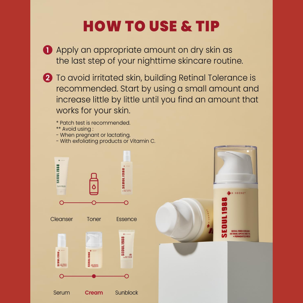 KSECRET - SEOUL 1988 Cream : Retinal Liposome 1% + Fermented Rice - Crema viso anti-eta