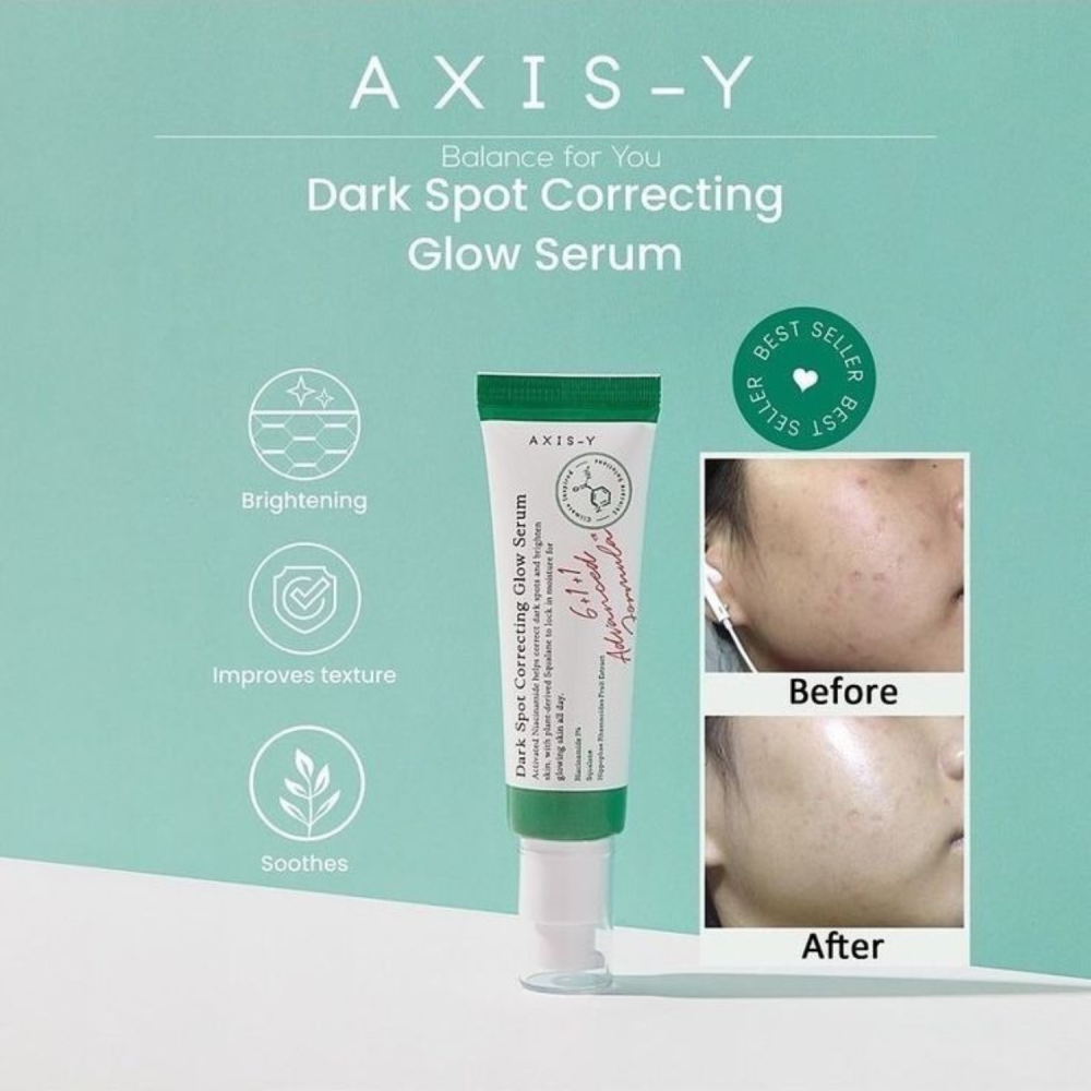 - AXIS-Y – Dark Spot Correcting Glow Serum: Siero schiarente con niacinamide 5%, perfetto per macchie da acne e discromie. Illumina l’incarnato, uniforma la texture e dona un glow naturale senza irritare la pelle sensibile.
