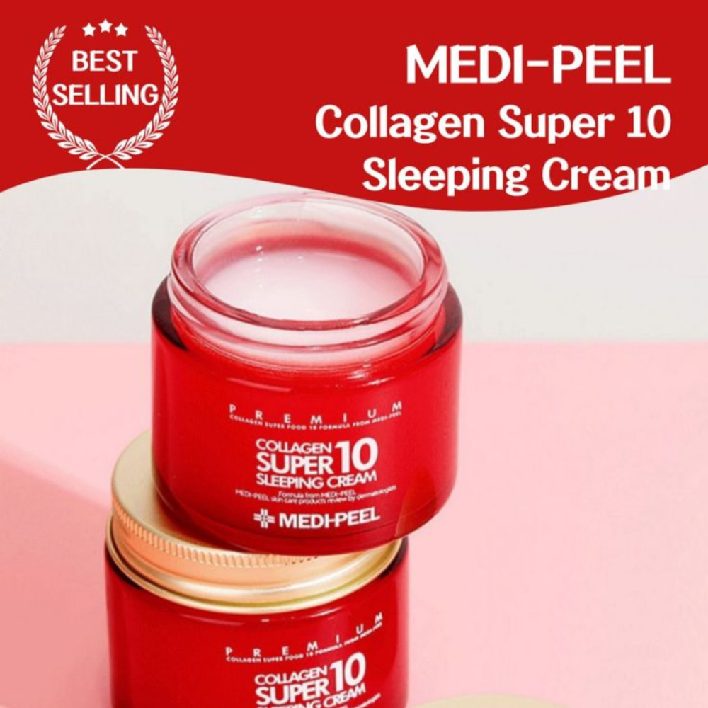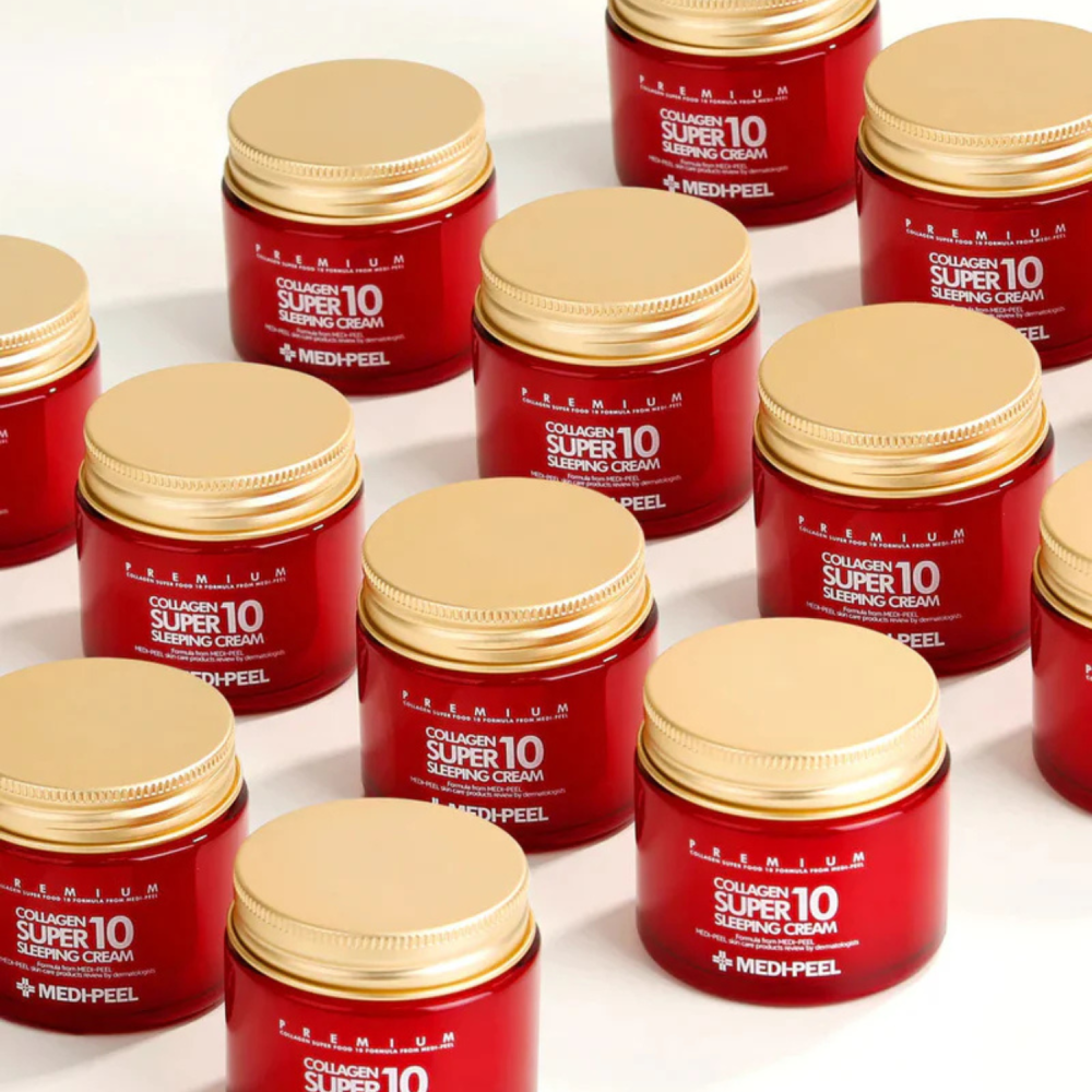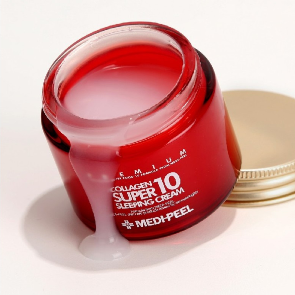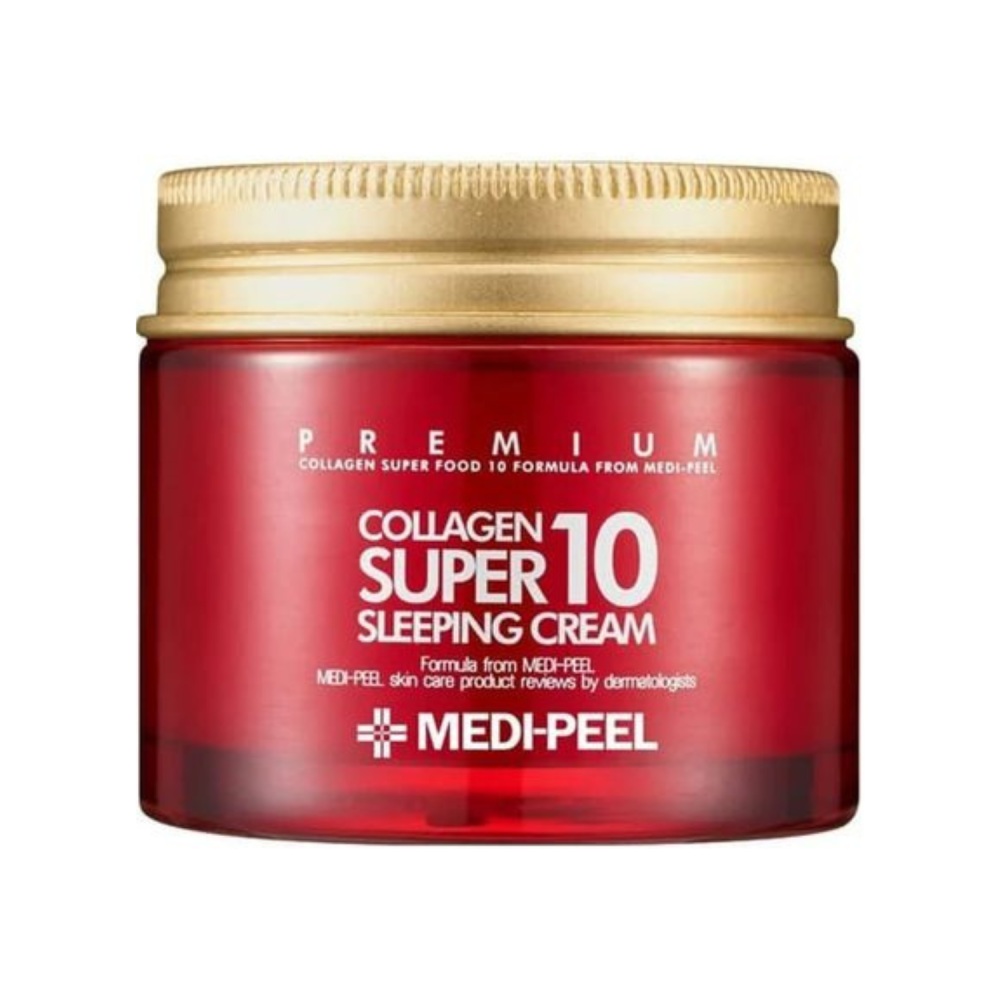 MEDI-PEEL Collagen Super 10 Sleeping Cream è una crema notte nutriente con collagene, superfood ed oli vegetali che combatte disidratazione e perdita di tono. Pelle più compatta, elastica e luminosa al risveglio.