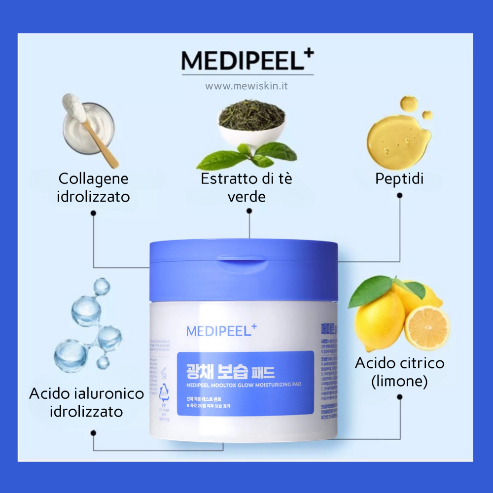 Medi-Peel – Mooltox Glow Moisturizing Pads – Dischetti viso idratanti e illuminanti