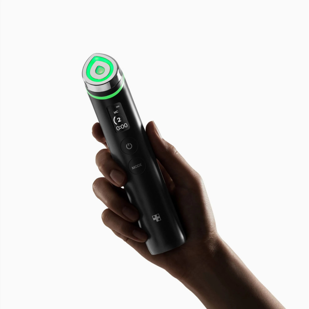 • MC Mode (Luce Verde) — Microcorrente + LED Therapy (verde): Utilizza microcorrenti a bassa intensità per tonificare i muscoli del viso, stimolare la produzione di ATP e collagene e migliorare la definizione dei contorni. La luce verde riequilibra e uniforma l’incarnato. Da usare con movimenti lenti verso l’alto per 5-10 minuti, una o più volte al giorno.