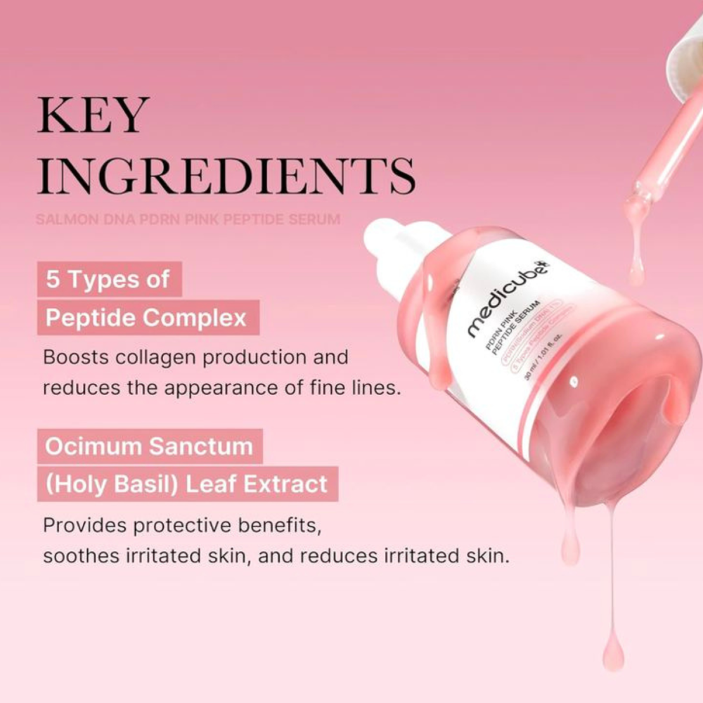Medicube PDRN Pink Peptide Serum è un siero anti-età con 1% di PDRN di salmone, complesso di 5 peptidi e niacinamide. Leviga rughe, rassoda, illumina e uniforma l’incarnato, donando alla pelle un aspetto giovane e radioso.