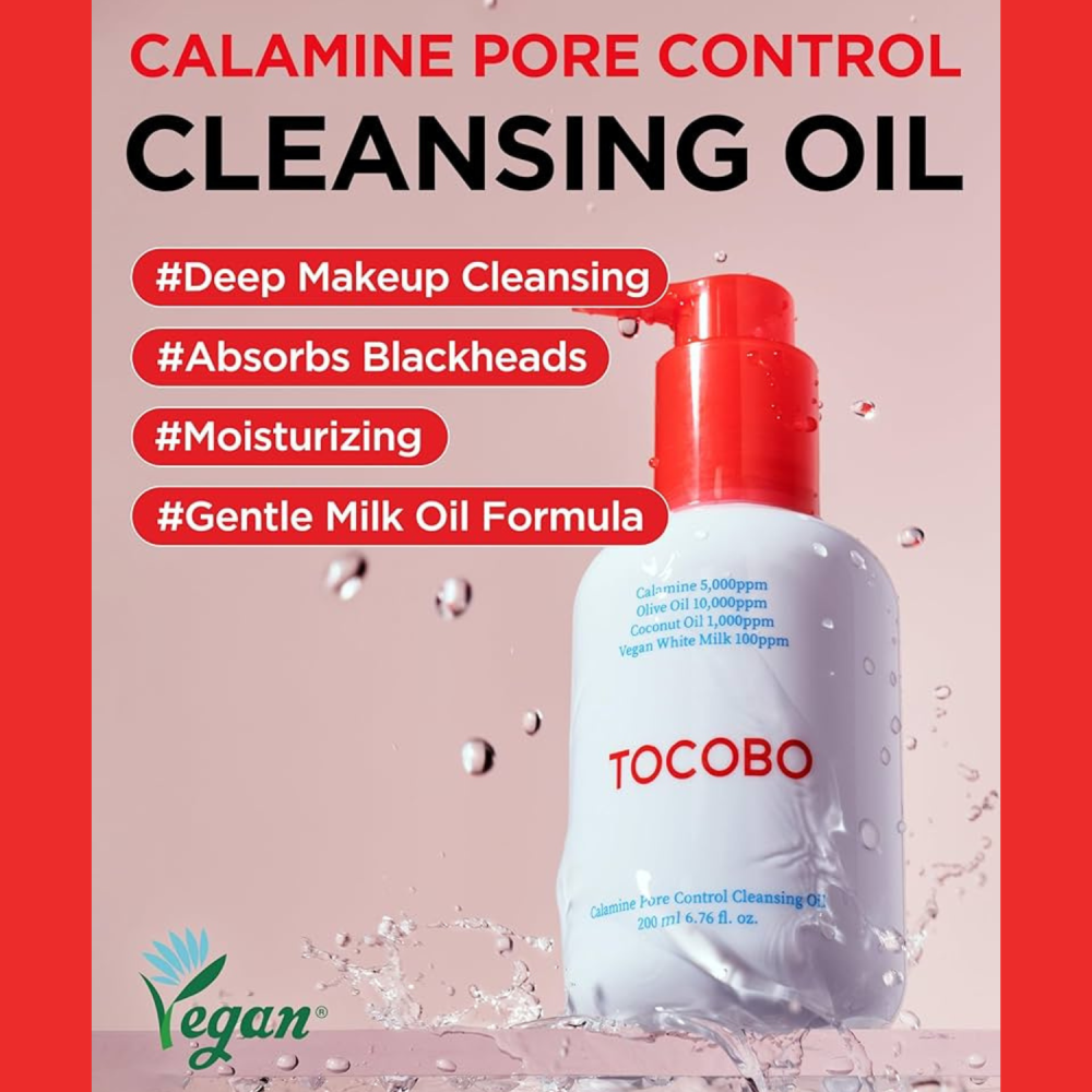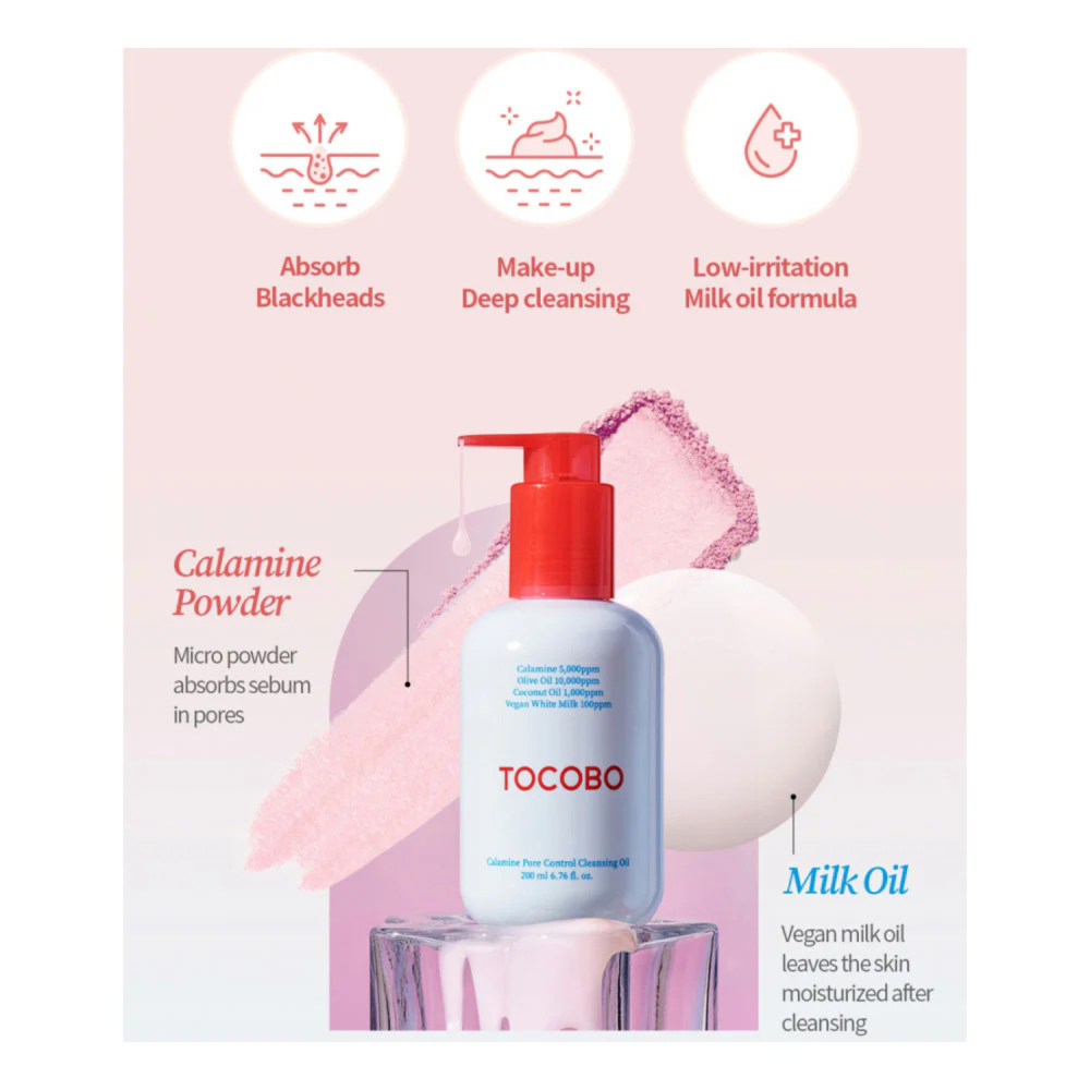 TOCOBO – Calamine Pore Control Cleansing Oil è un olio detergente viso dalla texture setosa che si trasforma in una emulsione lattiginosa a contatto con l’acqua, permettendo una detersione profonda ma delicata.